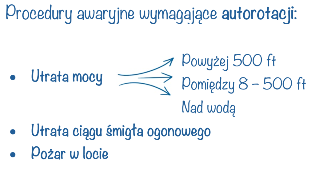 O ile konieczne jest opanowanie sztuki lotu w autorotacji, o tyle należy podkreślić, że nie jest ona magicznym rozwiązaniem na każdy problem. Tylko pięć procedur awaryjnych (na trzydzieści trzy) wyszczególnionych w instrukcji użytkowania w locie Robinsona R44 II wymaga natychmiastowej autorotacji i są to: utrata mocy powyżej wysokości 500 ft, utrata mocy na wysokości od 8 do 500 ft, utrata mocy nad wodą (podobne procedury jak nad ziemią), utrata ciągu śmigła ogonowego (choć tutaj możliwy jest lot z ograniczoną sterownością powyżej pewnych prędkości dzięki statecznikowi poziomemu) oraz pożar w locie. Reszta procedur awaryjnych dzieli się natomiast na dwa dalsze sposoby postępowania – albo obserwację dalszych lub współwystępujących objawów lub lądowanie. Przy czym jeśli chodzi o lądowanie należy znać różnicę pomiędzy lądowaniem natychmiast a lądowaniem jak tylko to będzie praktyczne. To pierwsze wcale nie zakłada momentalnego opuszczenia dźwigni i pochopnego wyboru miejsca do lądowania. Oznacza ono normalne, bezpieczne lądowanie na terenie pozbawionym przeszkód (będąc w gotowości do przejścia do lotu autorotacyjnego jeśli zaistnieje taka potrzeba). Instruktorzy podczas szkolenia bardzo często błędnie zwracają proporcjonalnie dużą uwagę na autorotację, bez poświęcania czasu na ćwiczenie innych procedur. Oczywiście nie znaczy to, że mamy autorotacji nie trenować. Równie istotne są jednak inne, często mniej krytyczne sytuacje, których nieznajomość może pilota wprowadzić w poważne kłopoty. Nie raz zdarzało się, że pilot w momencie zaświecenia jednej z lampek ostrzegawczych przechodził do lotu autorotacyjnego i nieumiejętnie lądując niszczył śmigłowiec. Dlatego kluczem jest tutaj zrozumienie systemów i oparcie szkolenia o różne możliwe scenariusze zdarzeń w powietrzu. Odpowiednia wiedza dotycząca systemów i ich działania jest krytyczna dla bezpieczeństwa. Im więcej wiemy, tym lepiej jesteśmy wyposażeni do podjęcia dobrej decyzji. Bo w sytuacji awaryjnej nikt przecież nie liczy do trzech. Nasze reakcje muszą być dobrze wyuczone i automatyczne.
