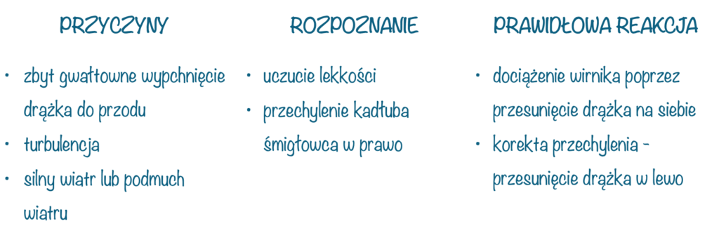 - uderzenie piasty wirnika o maszt (tzw. mast bumping)
